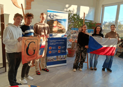 Ve dnech 13. – 17.10 2025 na naší škole proběhl v rámci Projektu Erasmus+ „ERASMUS DAY“. Naše škola získala v roce 2022 akreditaci Erasmus a díky ní jsme již ve třech projektových obdobích zrealizovali spoustu skupinových a individuálních výjezdů studentů do zahraničí a učitelů na stínování a jazykové kurzy. V uplynulém období tak mohlo navštívit zahraniční školy v rámci Erasmu+ 222 účastníků. Studenti tak mohli objevovat nové země, školy, ale také sami sebe. Mezi navštívené destinace patřily Irsko, Francie, Španělsko, Německo, Polsko, Slovinsko a Slovensko. Jsme za Erasmus+ moc rádi, přináší totiž nové poznatky, rozměry, přátelství, je to úžasný doplněk vzdělávání.