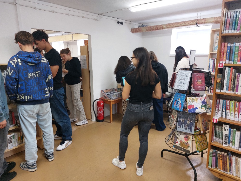 Tématem pondělní hodiny českého jazyka a literatury v třídě C1.B byly Knihovny a jejich služby. A kde s tímto tématem seznámit lépe a názorněji než v prostorách knihovny. Využili jsme toho, že Obecní knihovna v Zastávce leží hned naproti našeho gymnázia a po dohodě s paní knihovnicí jsme strávili 45 mezi knihami naučnými i zábavnými.