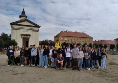 Studenti třetích ročníků se hned zkraje školního roku vydali na dějepisnou exkurzi. Nejprve navštívili město Terezín, kde si prohlédli bývalou věznici gestapa v Malé pevnosti i nejdůležitější objekty bývalého židovského ghetta, především pak Magdeburská kasárna. Po nedlouhé polední přestávce následoval přejezd do blízkých Lidic, kde se cílem návštěvy stalo tamní pietní území připomínající obec vyhlazenou nacisty v r. 1942.