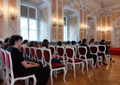 Pod vedením osvědčeného průvodce Ing. Tomáše Kryla se aktivně zapojili do jeho vzdělávacího programu Olomouc v běhu staletí aneb Dějiny v souvislostech, za což si obě třídy vysloužily pěkný diplom. Součástí programu byla také prohlídka historických prostor Arcibiskupského paláce a výšlap na věž kostela sv. Mořice, odkud se všem naskytl pěkný výhled nejen na město, ale i jeho okolí.