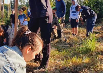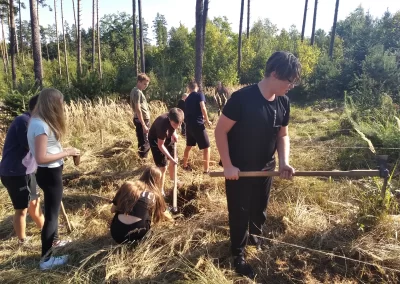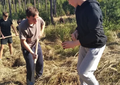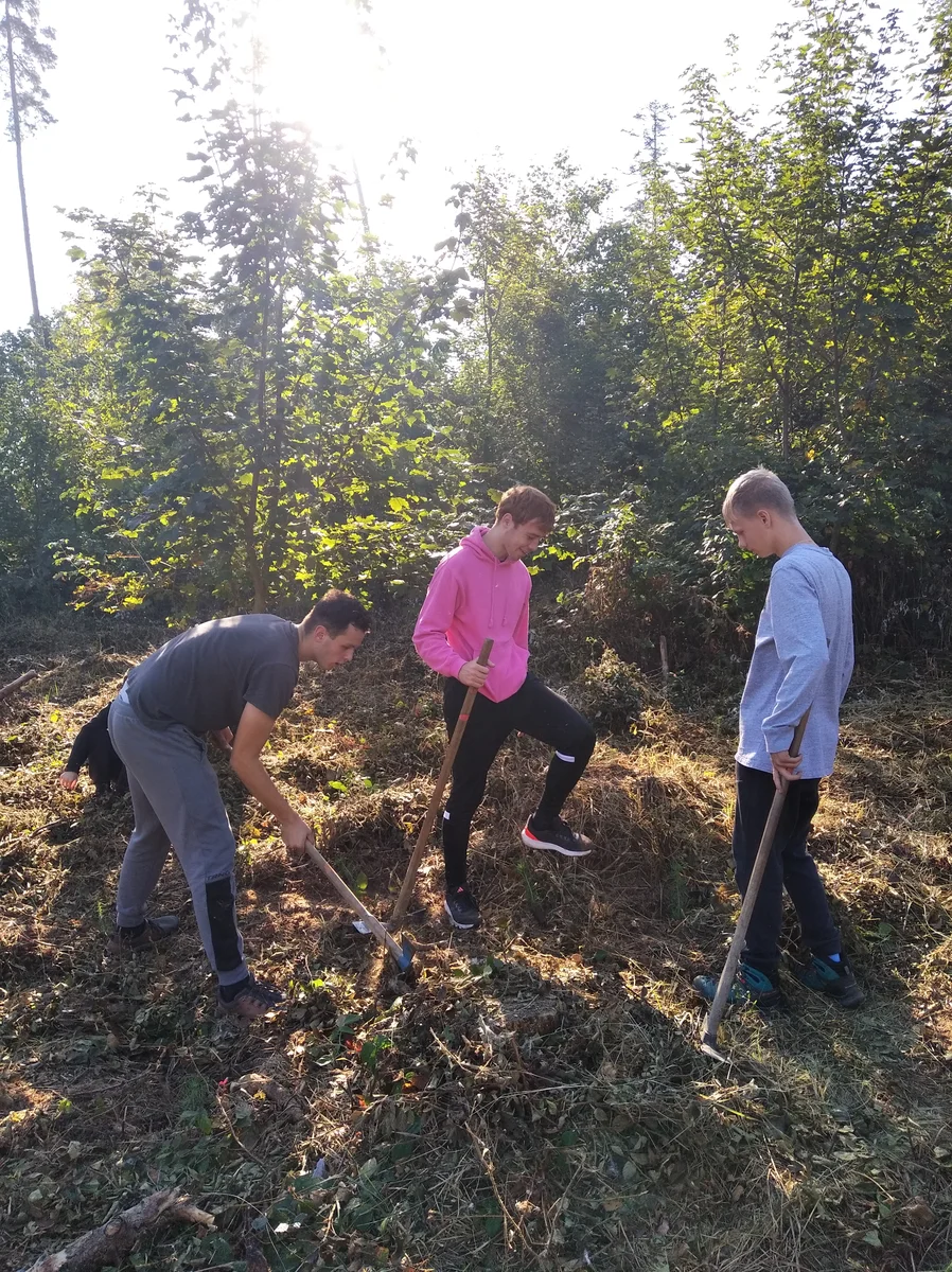 Na vlastní kůži jsme zjistili, že sázet les není vůbec snadné. Slunce peklo, zem byla tvrdá a plná kamení a větviček, motyky těžké…… Přesto se nám podařilo kousek lesa vysadit. Teď jen aby zapršelo….