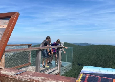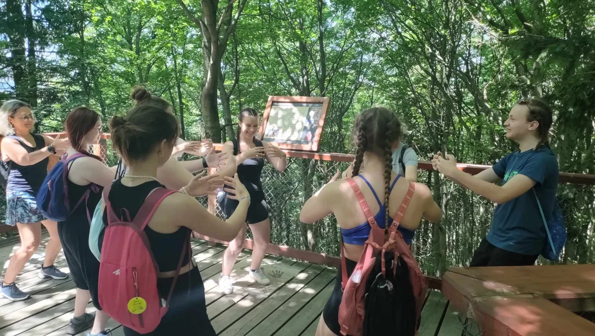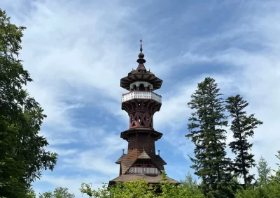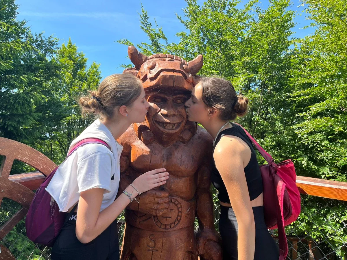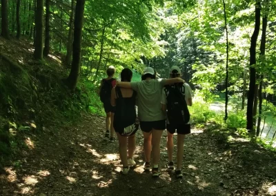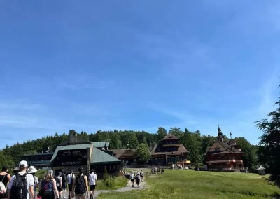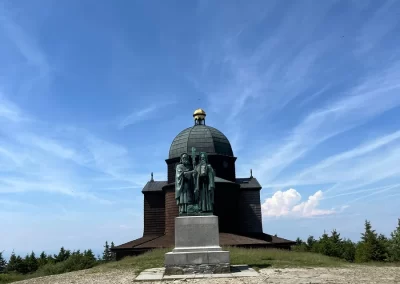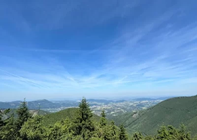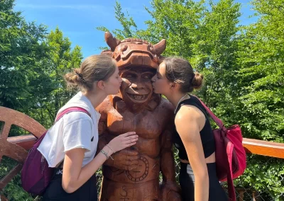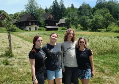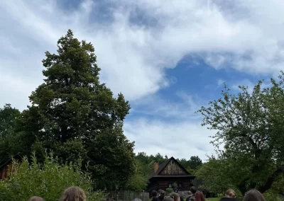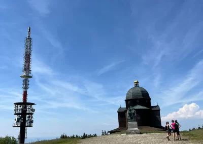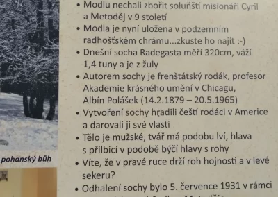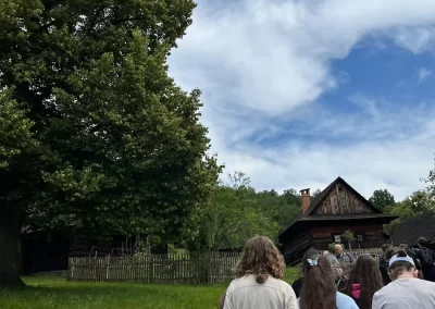Ubytovaní jsme byli v hostelu v Rožnově pod Radhoštěm a naplno jsme si užívali všech výhod, které nám ubytování nabízelo, výborné polopenze formou bufetu, vnitřního i venkovního bazénu, sauny, vyblokovaného hostelu pouze pro nás. 🙂 Zvládli jsme skoro patnáctikilometrovou túru z Pusteven do Rožnova pod Radhoštěm, navštívili jsme všechny tři okruhy Valašského muzea v přírodě — Valašskou dědinu, Dřevěné městečko i Mlýnskou dolinu, stezku korunami stromů Valaška se skleněnou vyhlídkou skywalk, chodníkem slávy, himalájským závěsným lanovým chodníkem a nejvýše položeným trampolínovým hřištěm v ČR, viděli jsme slavné stavby slovenského architekta Dušana Jurkoviče, sochu pohanského boha Slovanů Radegasta, Kapli svatého Cyrila a Metoděje.