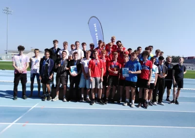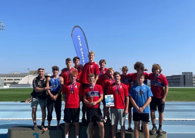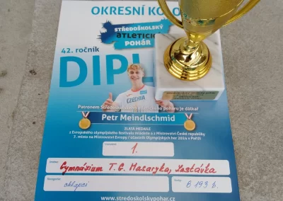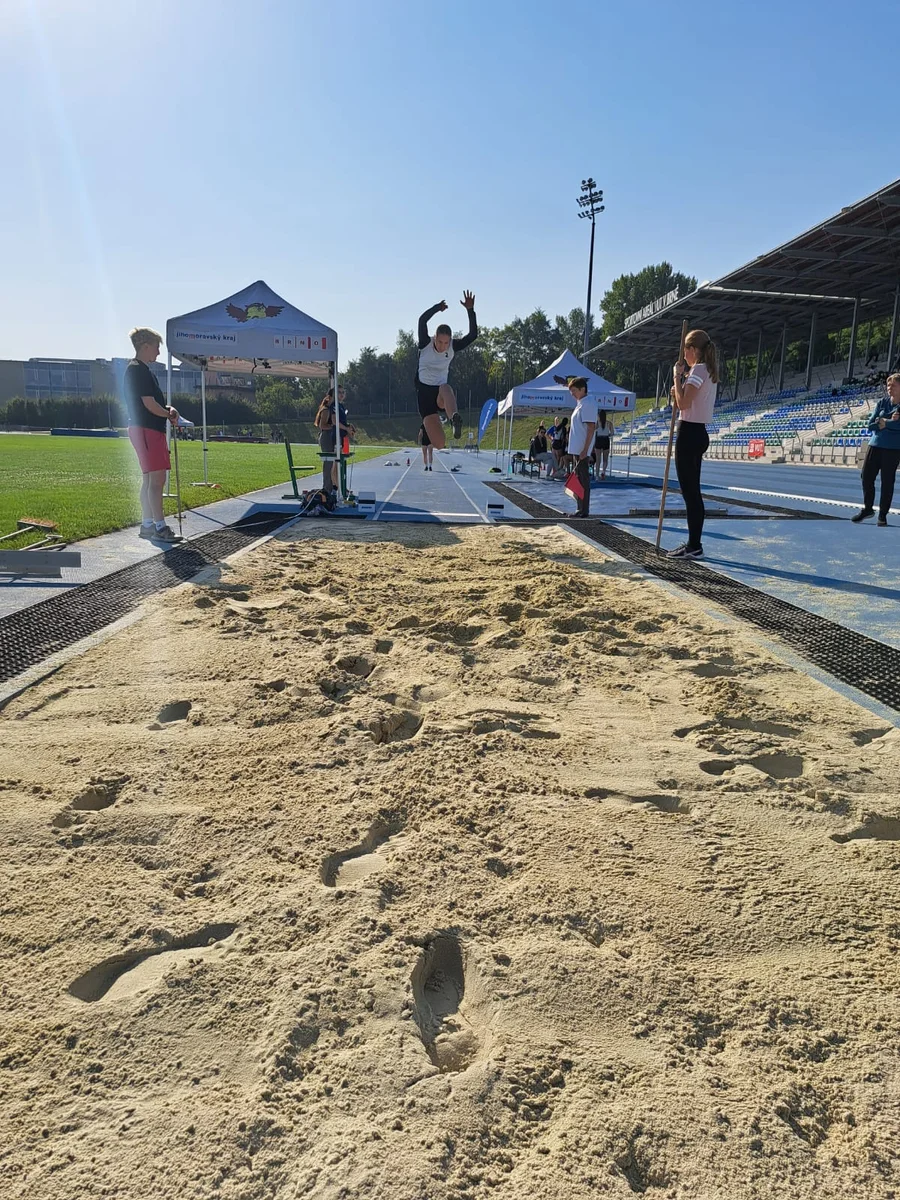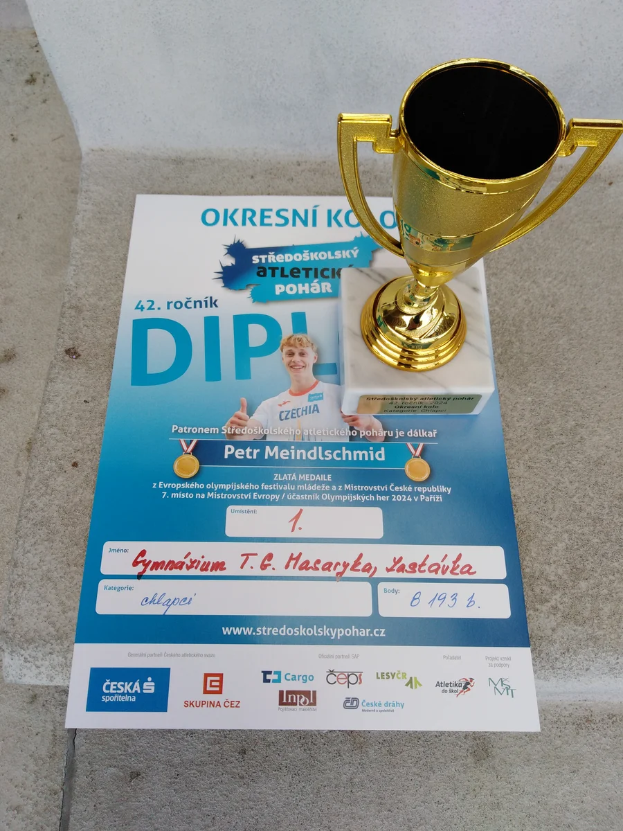 Ve středu 18. 9. 2024 se uskutečnilo v AREÁLU VUT v Brně Okresní finále přeboru středních škol v lehké atletice chlapců – Středoškolský atletický pohár, kterého se zúčastnily týmy středních škol okresu Brno – venkov, kde nechyběli ani chlapci našeho gymnázia. Závodili v běhu na 60m, 400m, 1500m, ve skoku dalekém a skoku vysokém, vrhu koulí a štafetě 4x200m. Ve všech disciplínách podali výborný výkon a odměnou jim byly zlaté medaile a pohár za 1. místo. Vítězství jim také otevřelo cestu do krajského finále v Břeclavi. Blahopřejeme k tomuto úspěchu a děkujeme za vzornou reprezentaci školy.